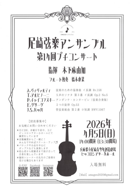 2025年11月 3日(月・祝) 11:00スタート 神戸聖愛教会(新神戸駅) 入場無料 さまざまなジャンルの団体が演奏します。 ニューフィルハーモニック大阪木管5重奏で出演。 同時にフリーマーケットも開催。 |